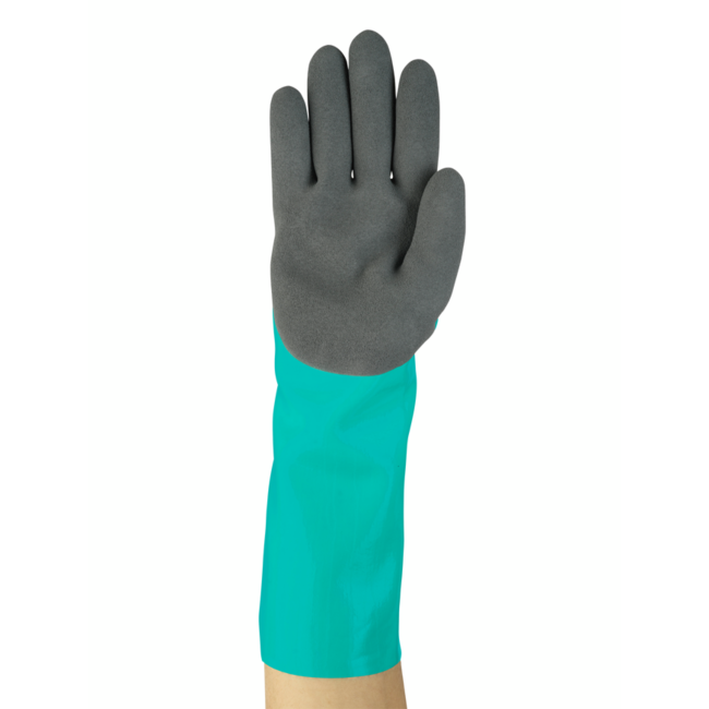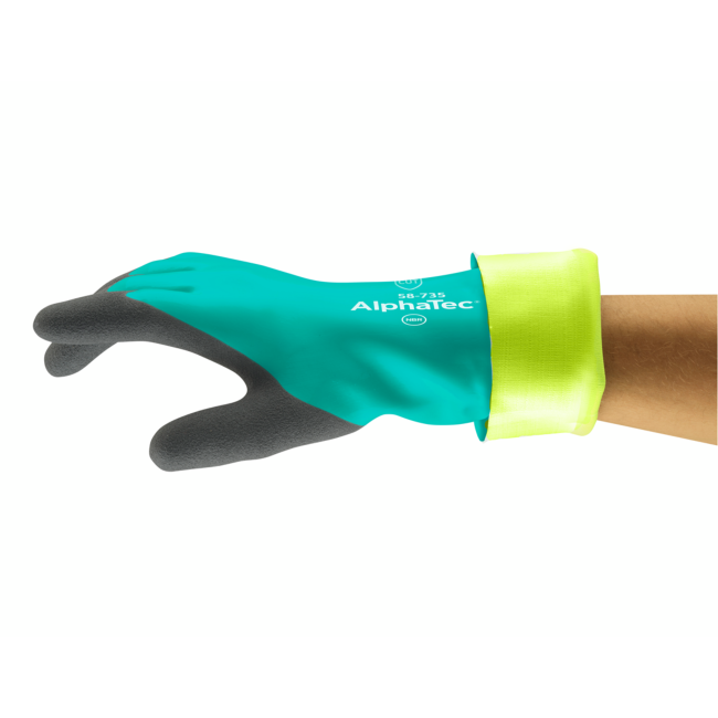 - Specialized protection: AlphaTec® 58-735 chemical gloves’ nitrile barrier protects against common chemicals
