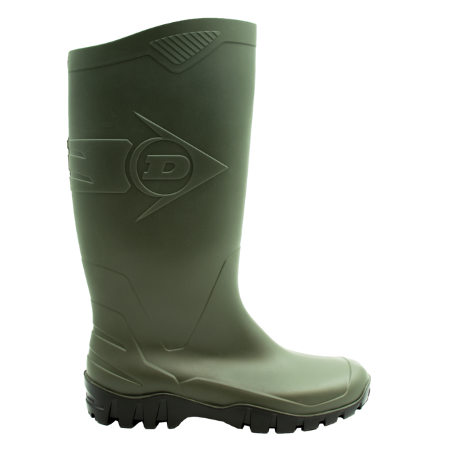 Versatile and durable PVC leisure boot, ideal for general outdoor use. Constructed entirely from PVC for water resistance and durability. Features a green shaft, black outsole, and white lining. No insole included.