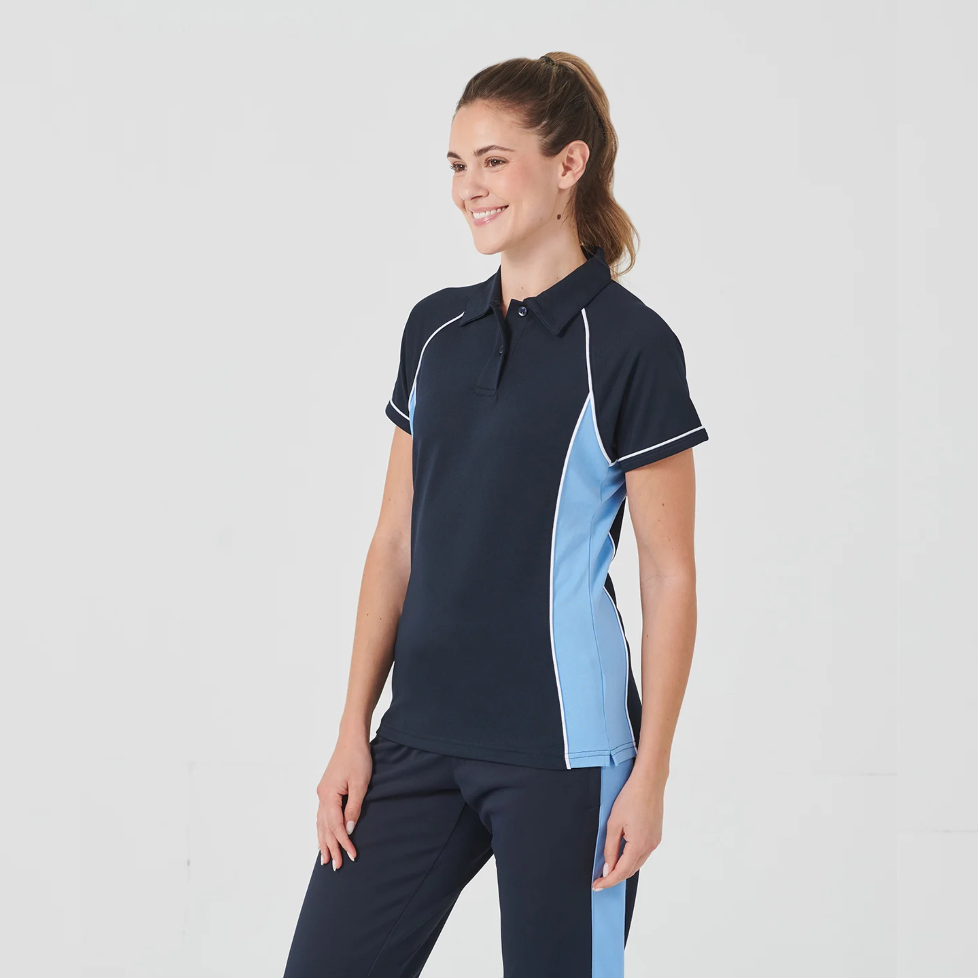Shop our Finden + Hales Ladies Performance Piped Polo Shirt for high-quality style & comfort. Perfect for sports or casual wear. Order now!