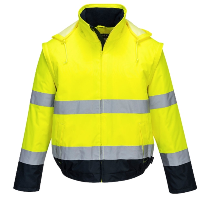 An adaptable, functional style offering excellent value for money. This jacket contains two spacious side pockets, one internal chest pocket with hook and loop closure, concealed adjustable hood and detachable zip-off sleeves. It has a heavyweight warm fleece lining and dark contrast panels for protection against dirt. This jacket is practical, robust and reliable.