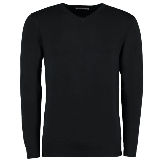 Shop the stylish Kustom Kit Mens V-Neck Sweater in Black. Made with quality material for ultimate comfort. Perfect for work or casual wear.