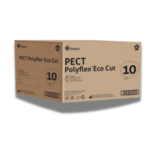 Polyflex Eco® Cut is our top of the range, innovative new cut resistant glove, made in part from recycled plastics. The engineered yarn is 18gauge, incredibly thin and dexterous reducing hand fatigue, whilst exceeding the requirement for cut level F by 40%. It is the first cut resistant rPET yarn glove in the UK market, and is loaded with features, like a reinforced thumb crotch area, hydrophobic treatment, and touch screen capability.