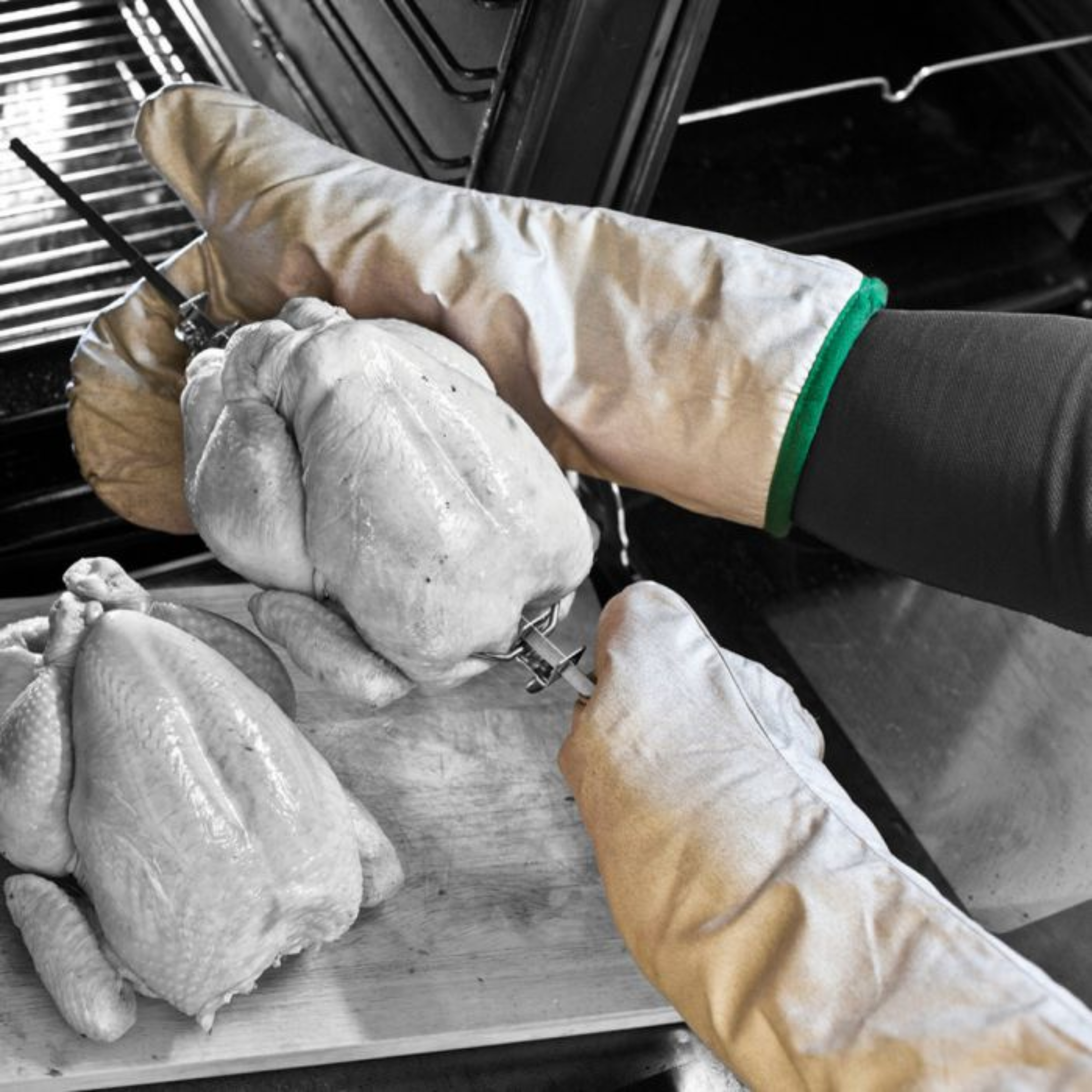 - Non-stick Teflon coating prevents oil and grease from absorbing into the glove