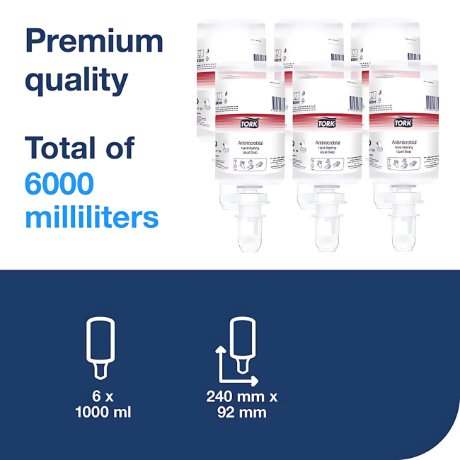 Tork Antimicrobial Liquid Soap, 6 x 1000ml/Case