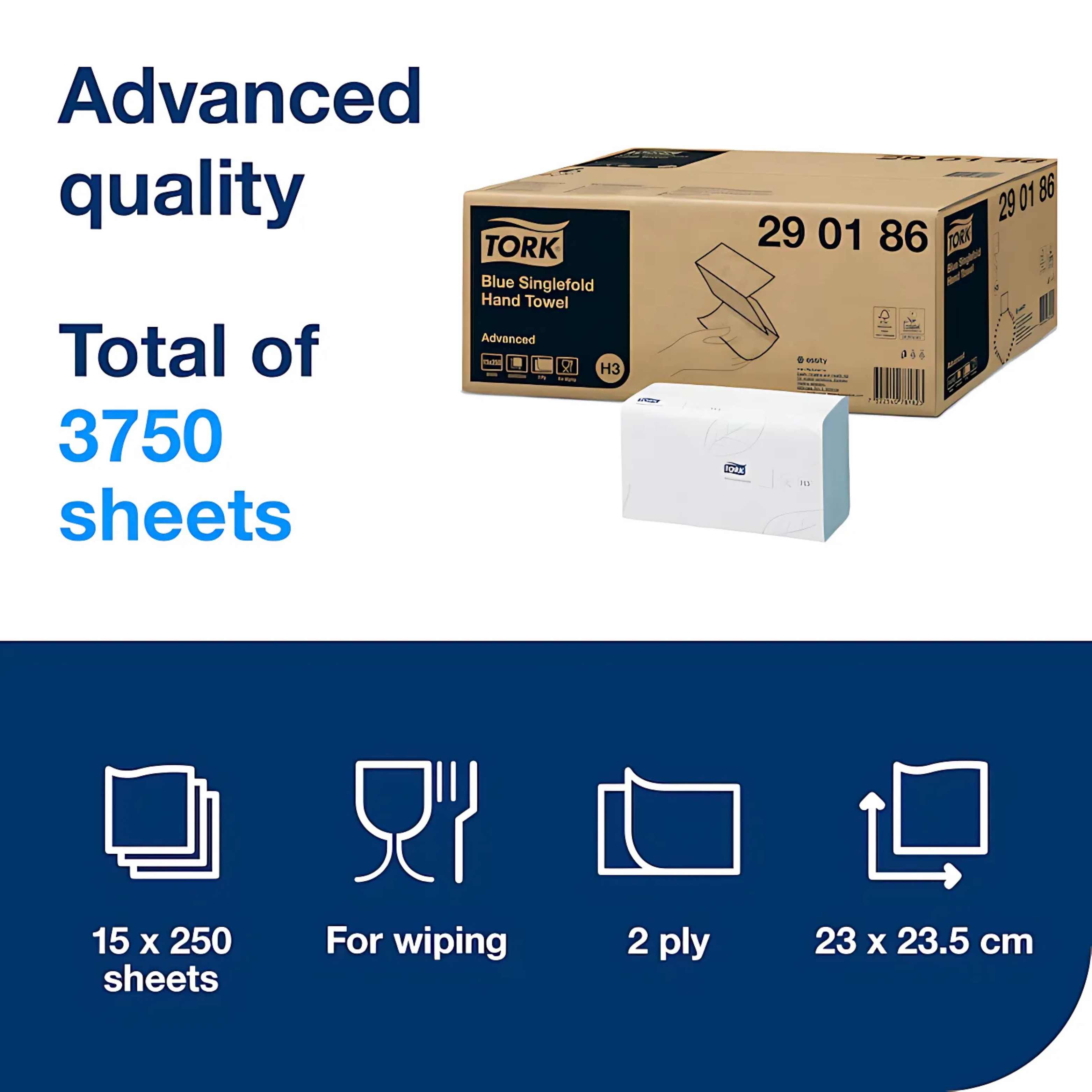 Satisfy hand drying needs with the Advanced Tork Singlefold Hand Towels ensure the right quality for when cost and performance are equally important. These towels are suitable for the Tork Singlefold Hand Towel Dispenser for demanding environments. Help control consumption and promote good hygiene with reliable one-at-a-time dispensing.