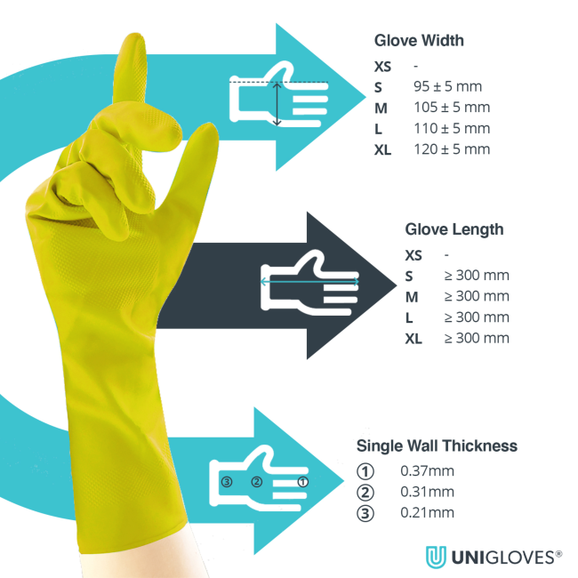 - Reusable, latex household gloves - available in blue, green, pink and yellow